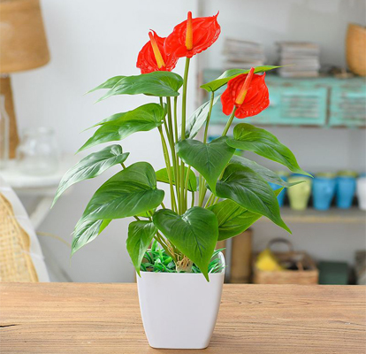 紅掌最適宜的生長溫度為14~35℃。冬季溫度低于10℃,紅掌易被凍傷,及時增溫。夏季溫度高于35℃,向紅掌周圍灑水降溫。